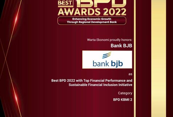 Dalam ajang tersebut, bank bjb meraih penghargaan bertitel Best BPD 2022 with Top Financial Performance and Sustainable Financial Inclusion Initiative (Category : BPD KBMI 2). Penghargaan diterima oleh Direktur Konsumer dan Ritel bank bjb Suartini.