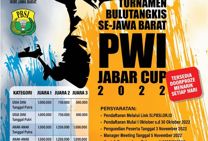 MATAKOTA, Bandung — Dalam rangka memperingati Hari Pahlawan 10 Nopember 2022. Ikatan Keluarga Wartawan Indonesia (IKWI) Jawa Barat bekerja sama dengan Persatuam Bulutangkis Seluruh Indonesia (PBSI) Jawa Barat menggelar Turnamen Bulutangkis PWI JABAR CUP.