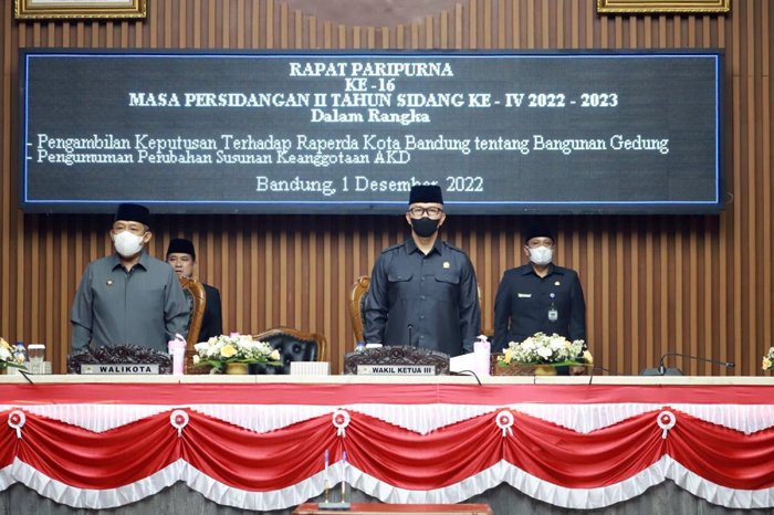 Untuk memenuhi amanat ketentuan Pasal 19 ayat (4) huruf a Peraturan DPRD Kota Bandung Nomor 1 Tahun 2020, sebagaimana telah diubah dengan Peraturan DPRD Nomor 3 Tahun 2020 tentang Perubahan atas Peraturan DPRD Nomor 1 Tahun 2020 tentang Tata Tertib, rapat paripurna juga telah menerima penyampaian Pendapat Akhir Wali Kota atas Pengambilan Keputusan terhadap Raperda tentang Bangunan Gedung ini.