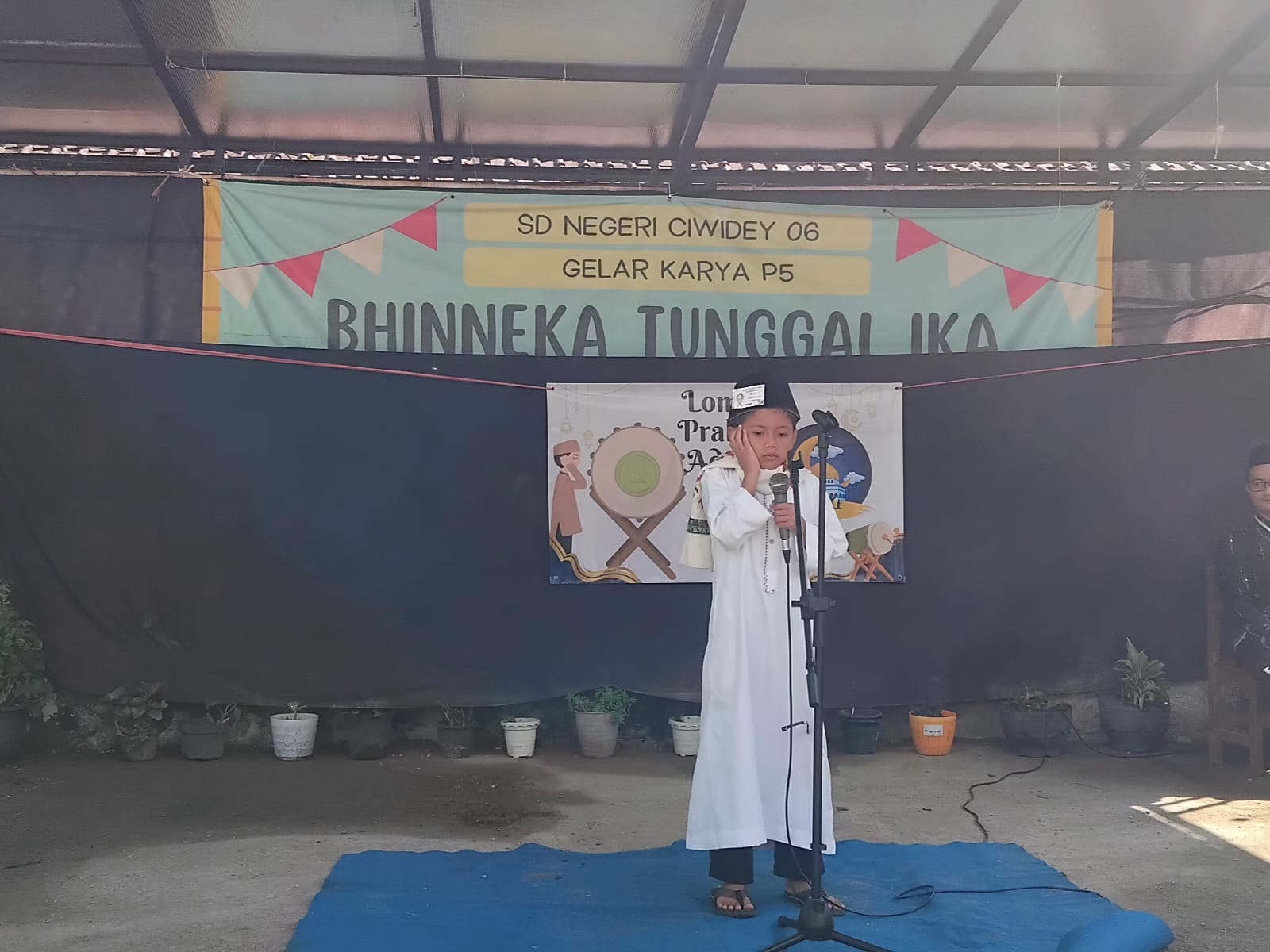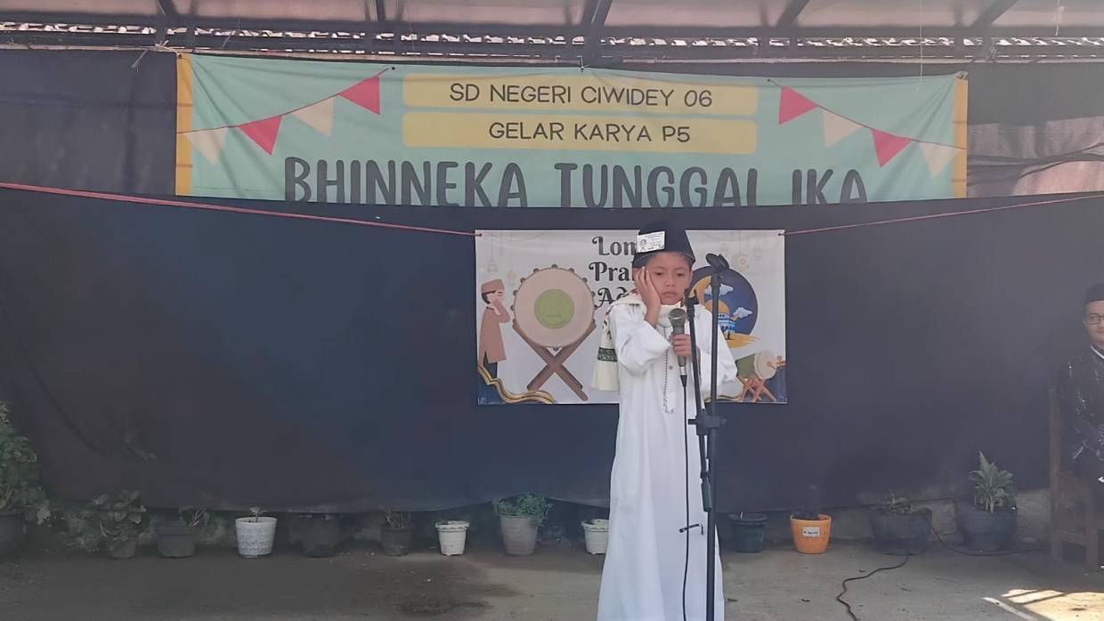 Di antara peserta, Sahal Zakir Mahmudin, siswa kelas 3 SDN Cijeruk, terlihat bersiap mengikuti lomba adzan. Ia sempat berlatih pelan sebelum dipanggil tampil.