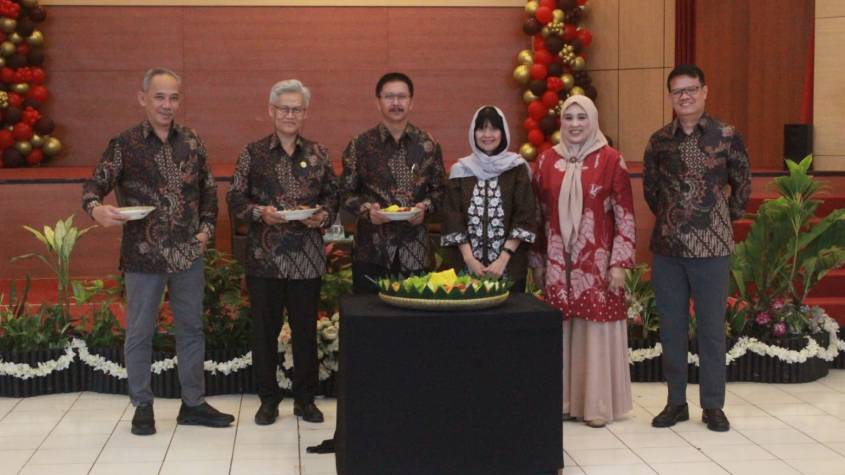 Acara kemudian dilanjutkan dengan prosesi pemotongan tumpeng sebagai simbol rasa syukur. Pemotongan dilakukan oleh Rektor USB YPKP bersama Sekretaris Pengurus YPKP, Dra. Femy Nazar, didampingi para wakil rektor.
