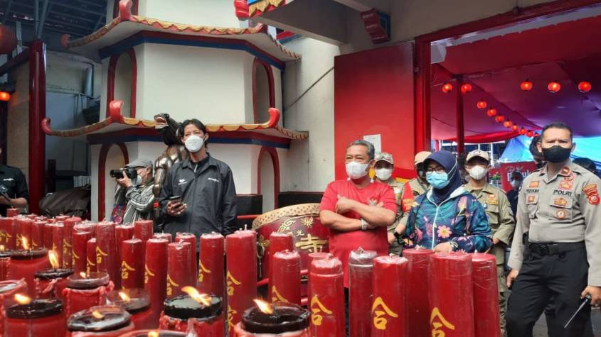 MATAKOTA, Bandung – Plt Wali Kota Bandung Yana Mulyana, memberikan apresiasinya kepada pengurus sejumlah vihara yang menerapkan pembatasan kapasitas di rumah ibadah saat perayaan Tahun Baru Imlek, 1 Februari 2022.